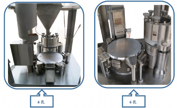5、配備粉體物料充填機(jī)構(gòu),使粉體物料經(jīng)過(guò)膠囊填充料倉(cāng)裝置連續(xù)均勻強(qiáng)制下料至膠囊填充區(qū);