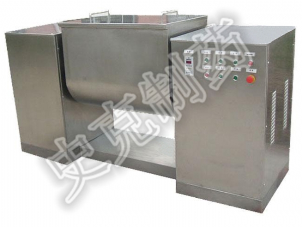 槽型混合機通過機械傳動,使S式攪拌漿旋轉(zhuǎn),推動物料往復(fù)翻動,均勻混合,槽型混合機操作時采用電氣控制,可設(shè)定混合時間,到時自動停機,從而提高每批物料的混合質(zhì)量。